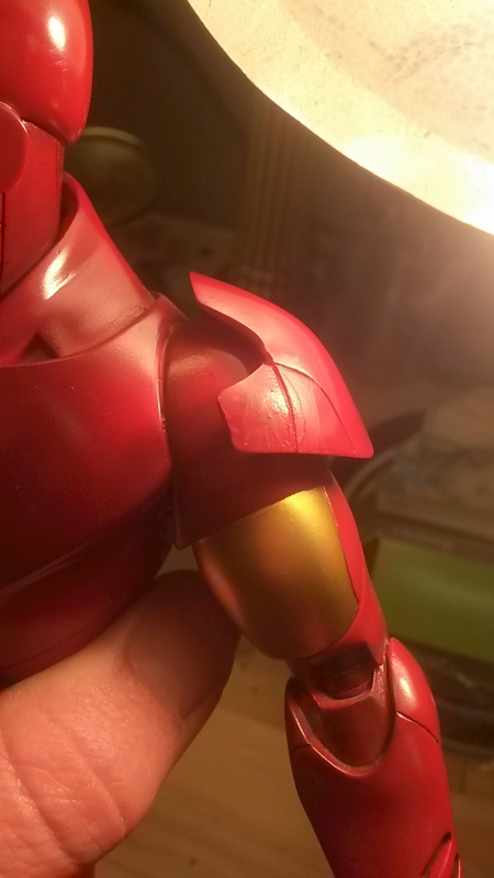 Iron Man – Bowen By this stage I was starting to hate matching metallic red! Another small but very challenging repair to his left shoulder armour which had been broken and previously repaired but was very visible.